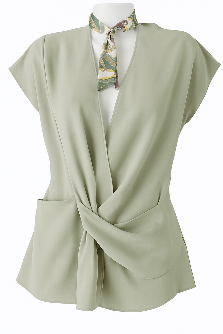 A botanical silk scarf accent at the neckline adds a chic statement, making this piece perfect for both professional and casual settings.